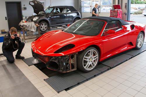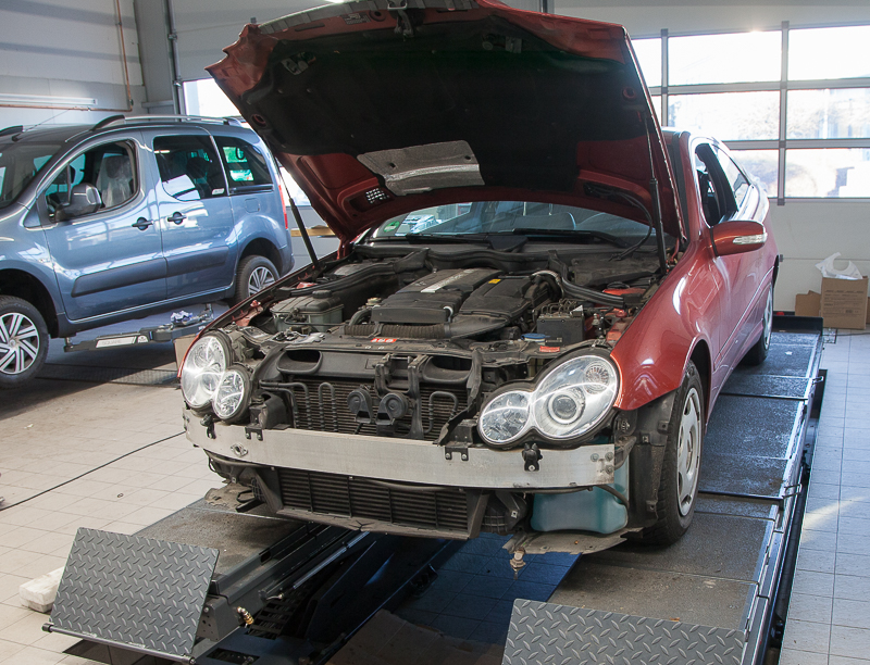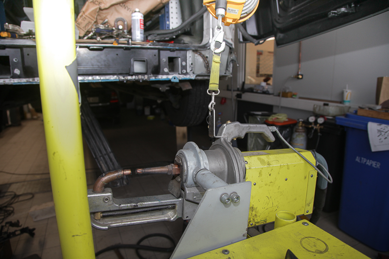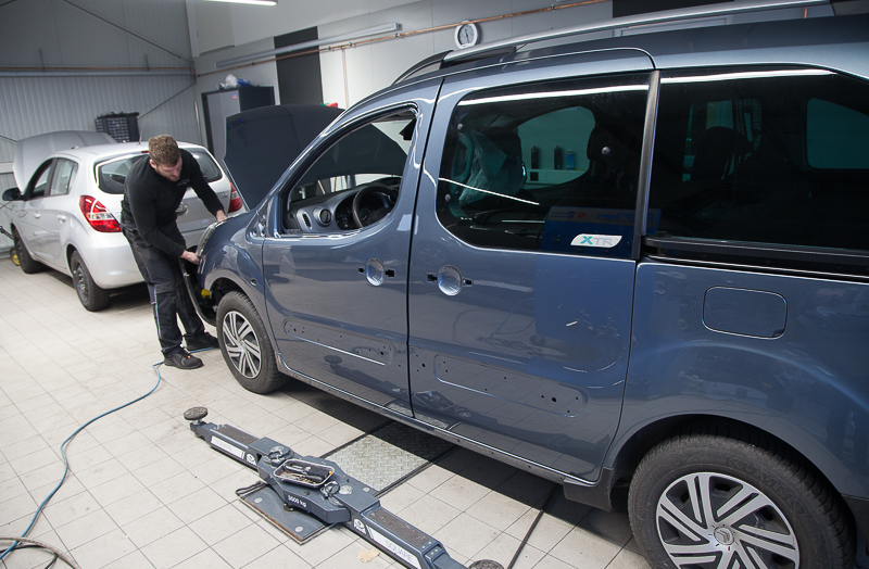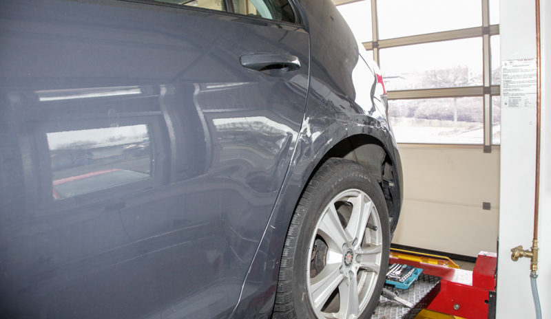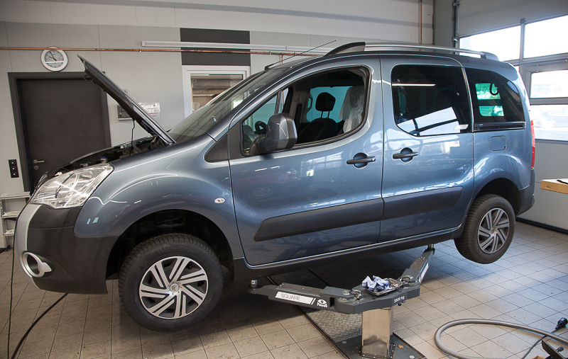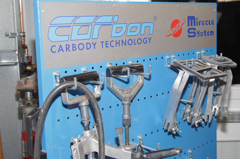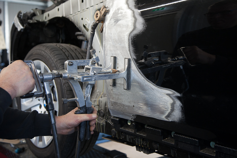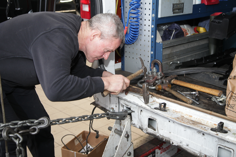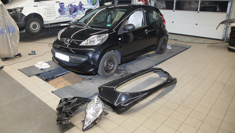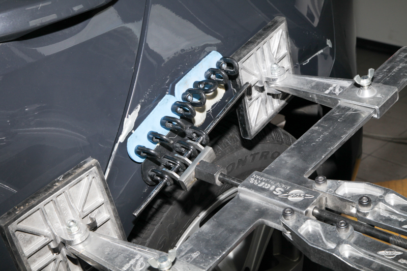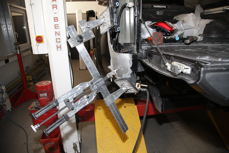 Zuerst wurde das Fahrzeug auf der Richtbank verankert