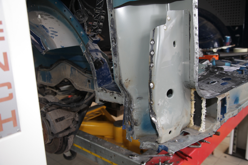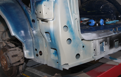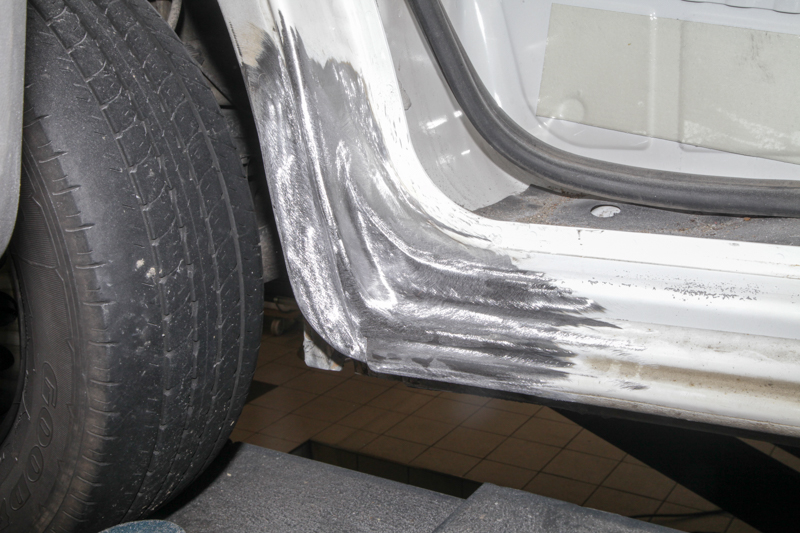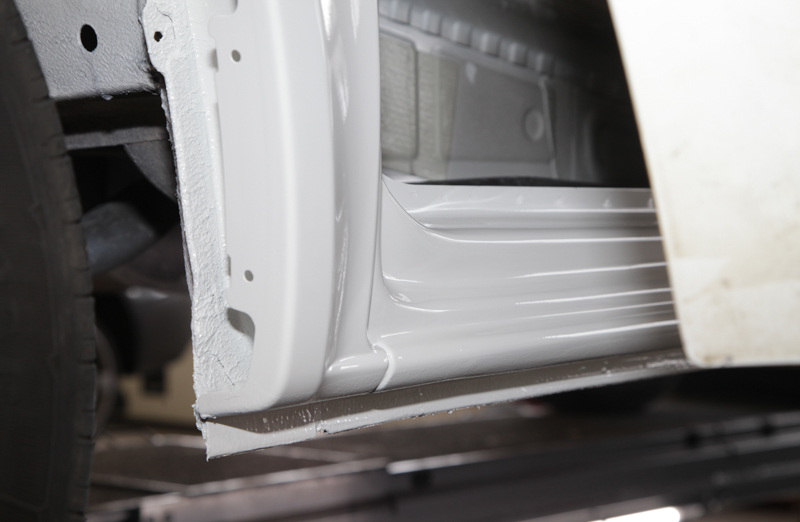 Zweites Blech ist eingeschweißt versiegelt, grundiert und lackiert.